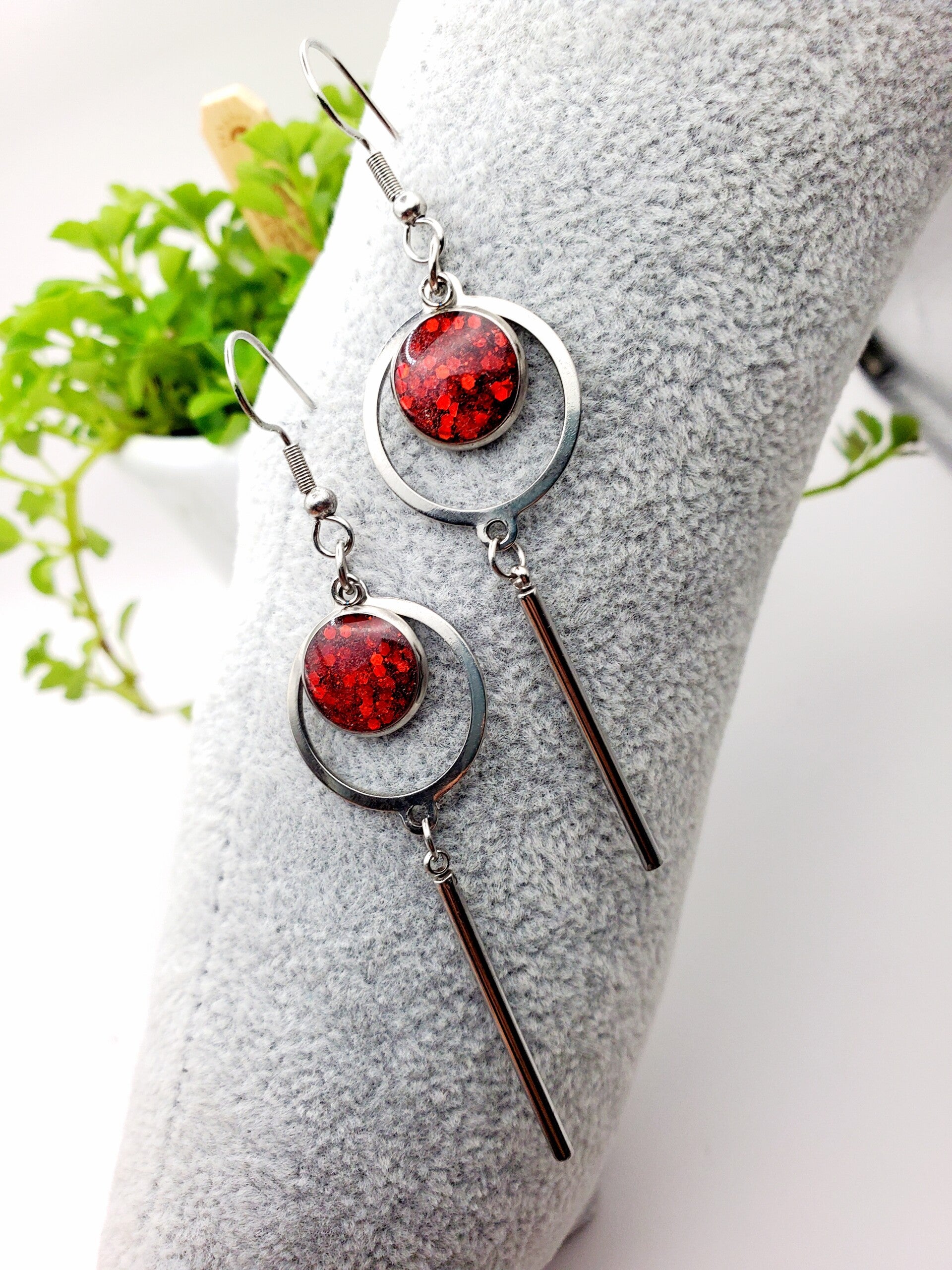 Remplissage en résine pailletée rouge