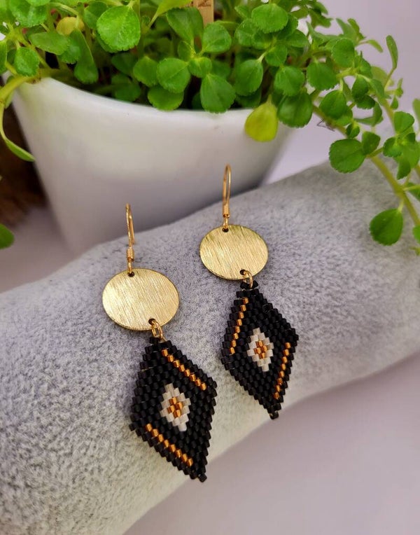 Ces boucles sont réalisées à la main grâce au tissage de perles