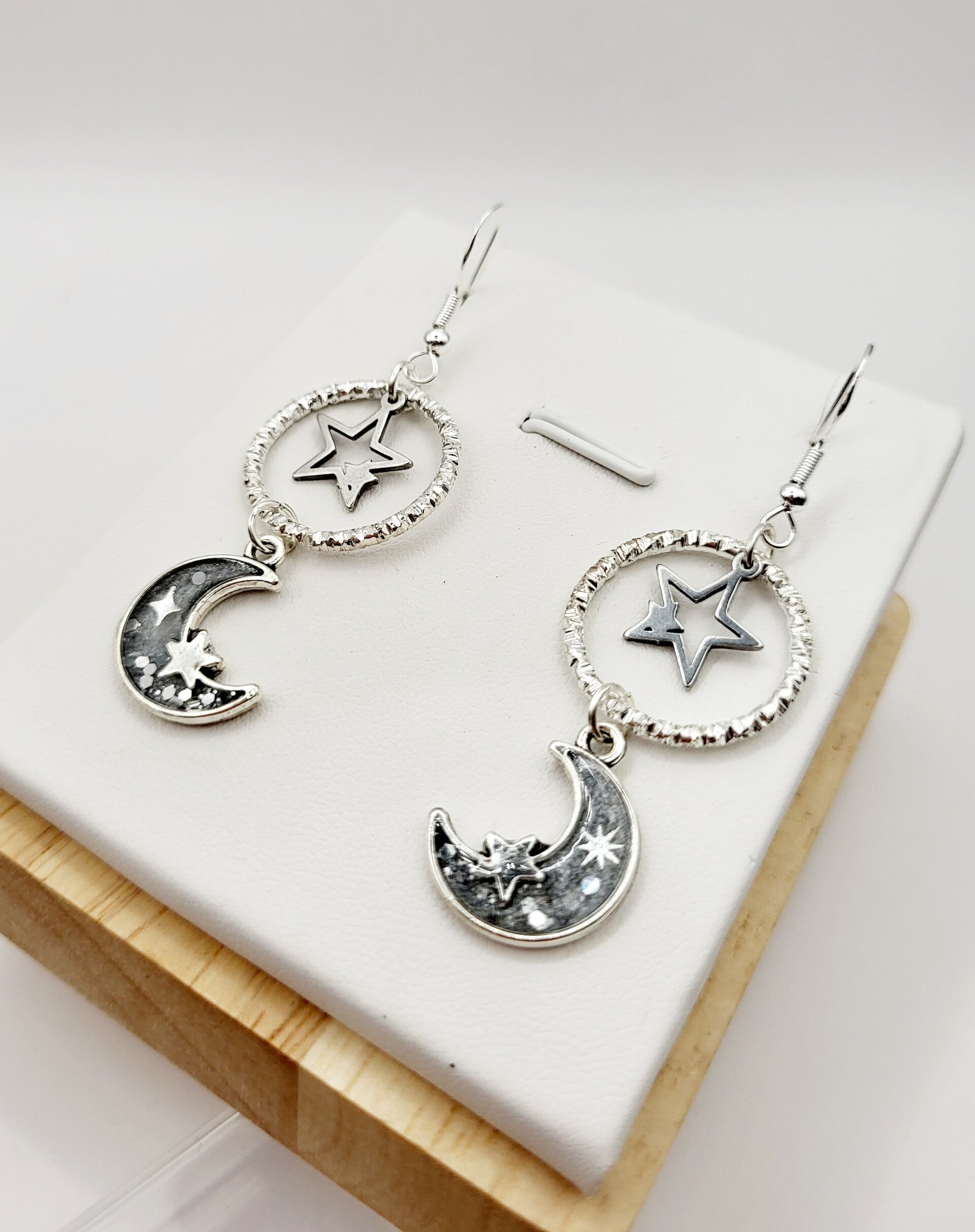 Boucles " Lunes étoilées blanches "