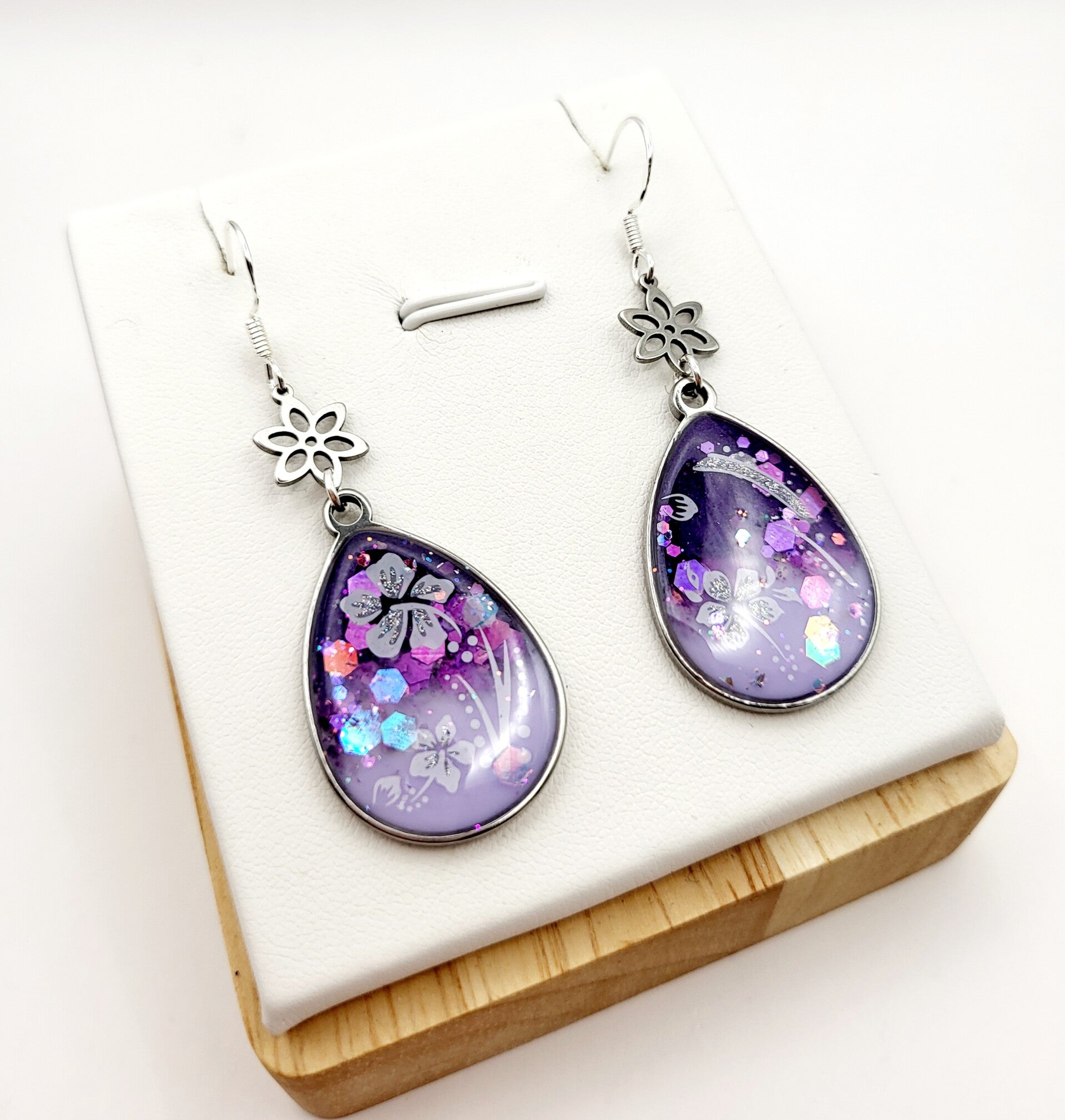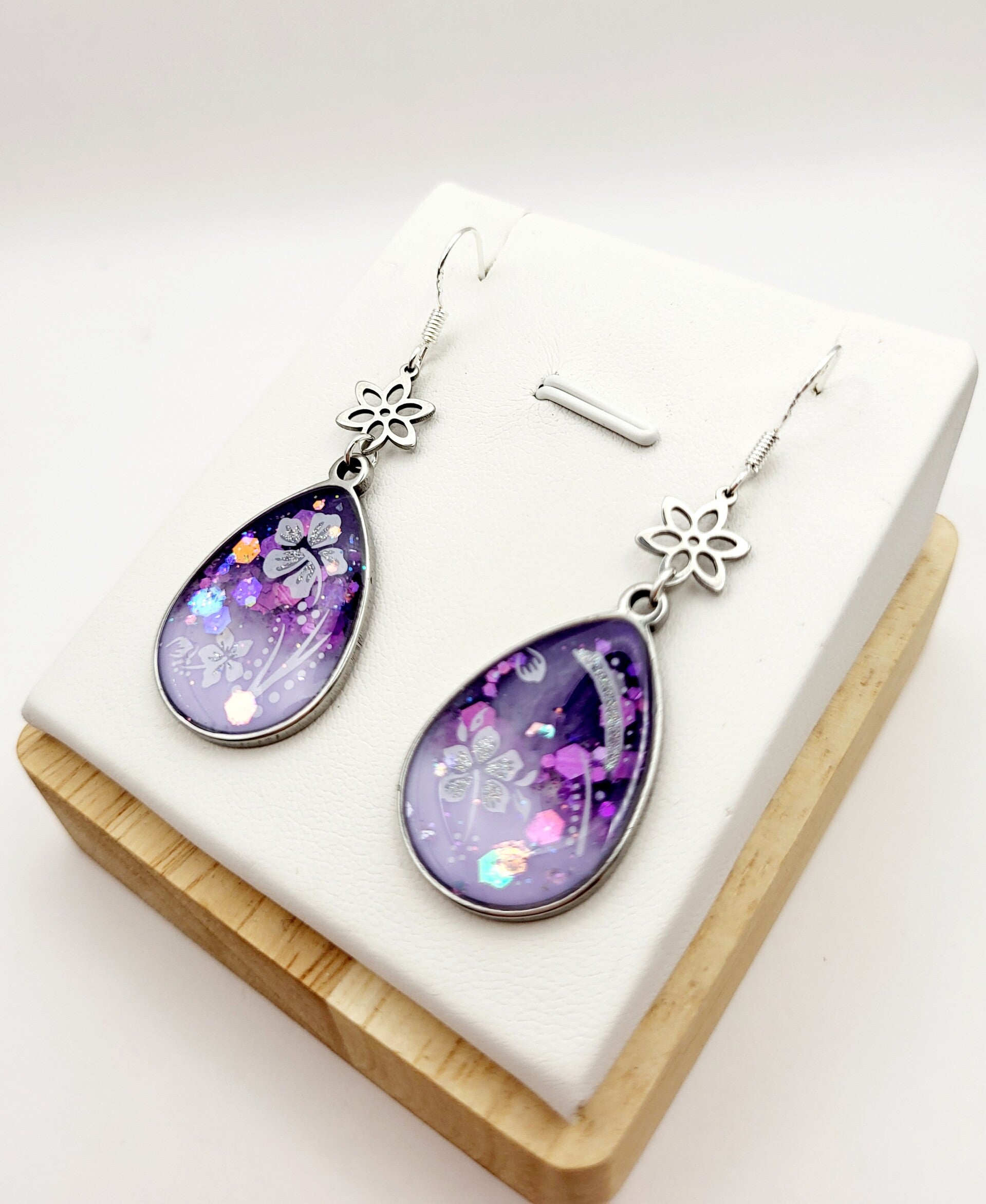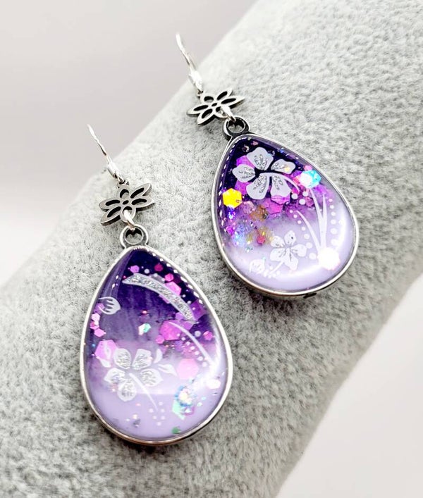 Boucles " Gouttes fleuries violettes "