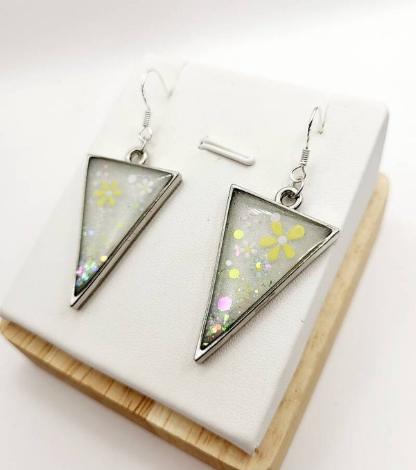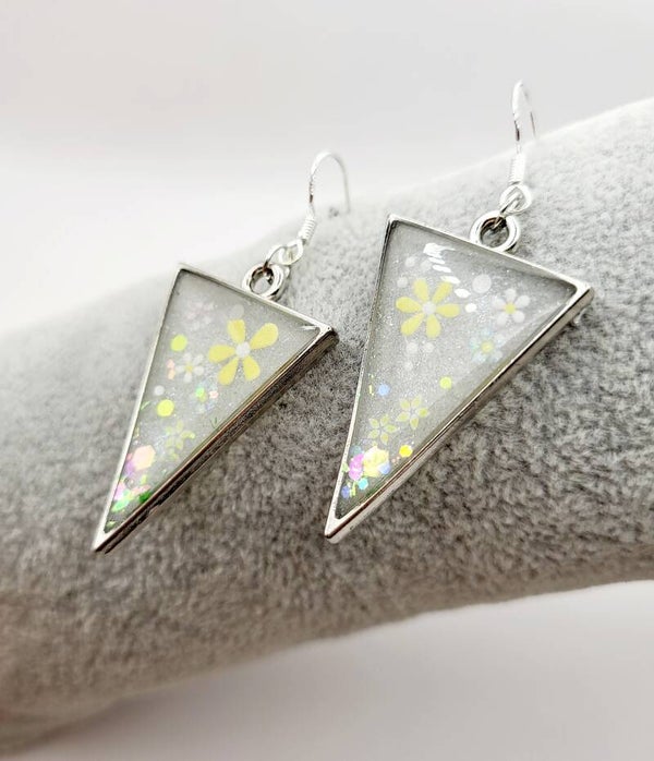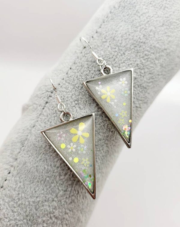 Boucles " triangulaires blanches fleuries "
