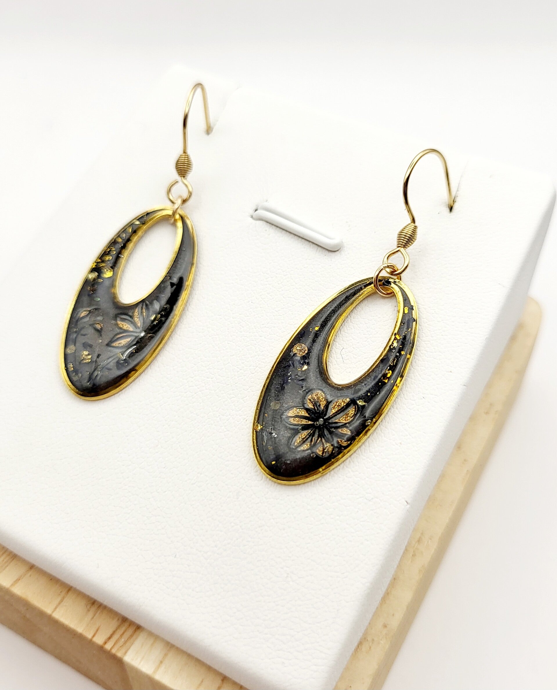 Boucles " ovales noires fleuries"