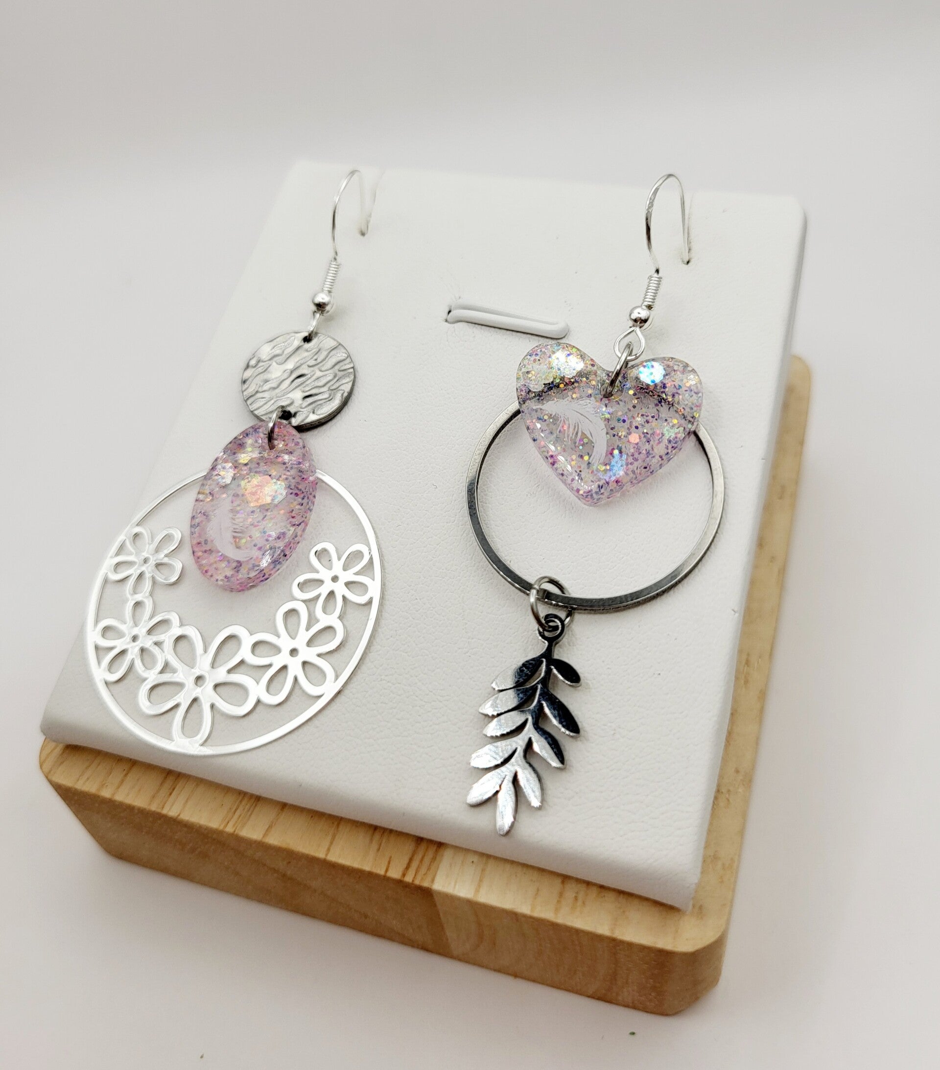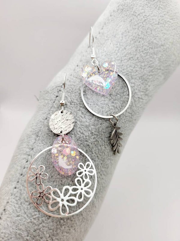 Boucles " Cœurs transparents roses pastels "