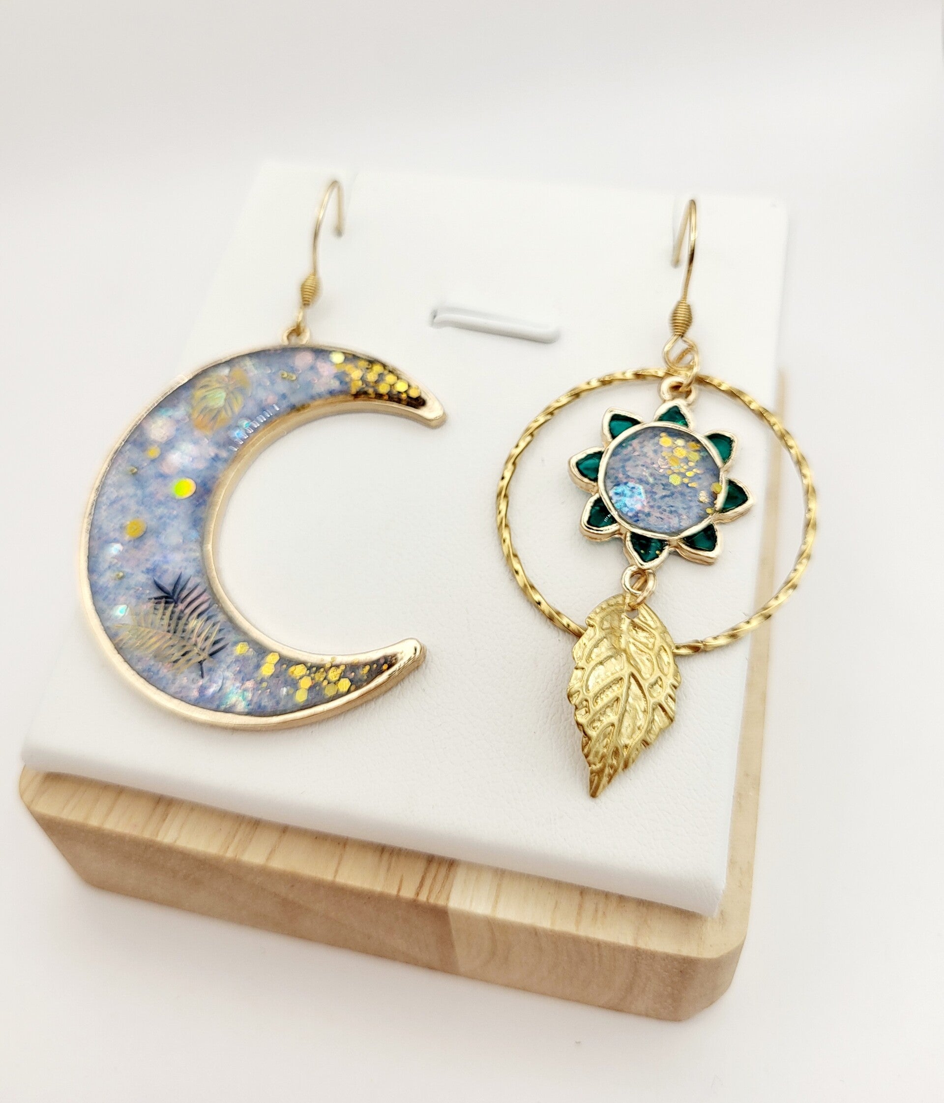 Boucles " Lunes étoilées bleues pailletées "