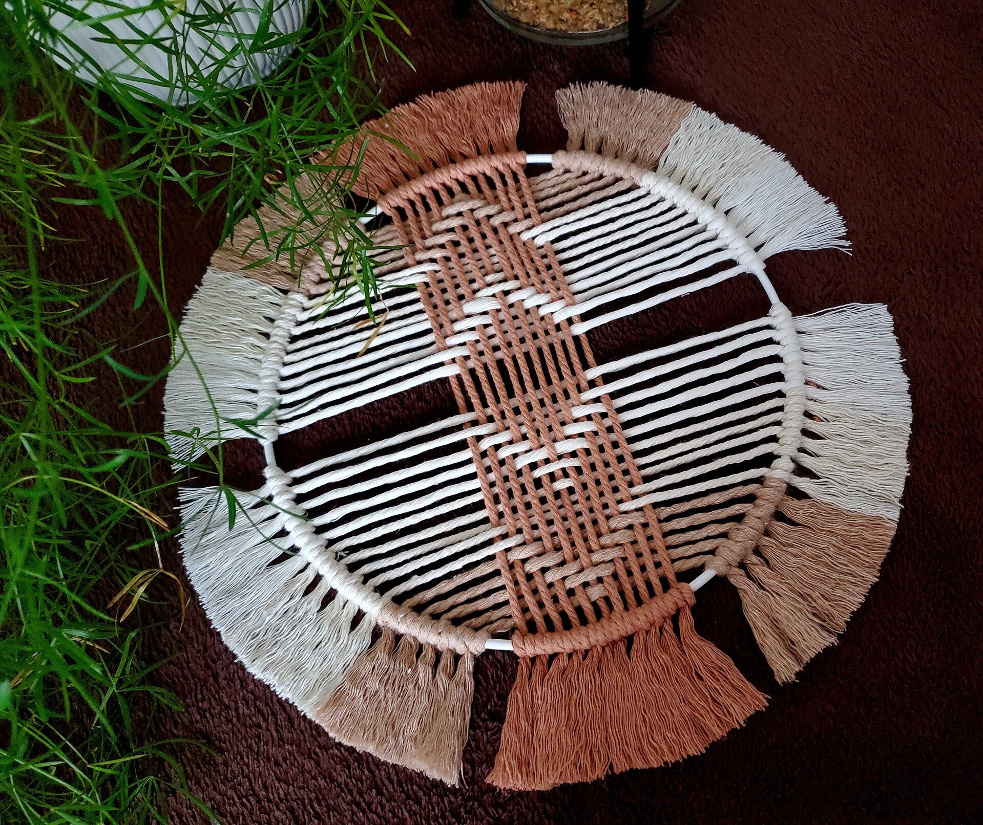 Macramé tissé brun et beige