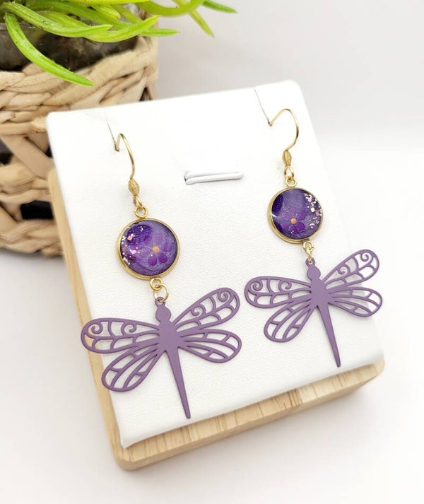 Boucles " Libellules mauves fleuries "