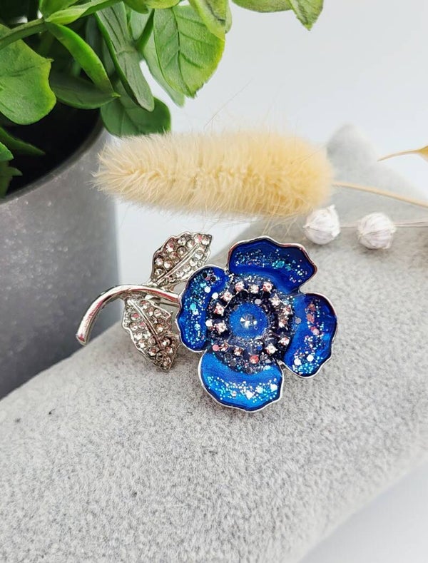 Broche " Fleur bleue argentee "